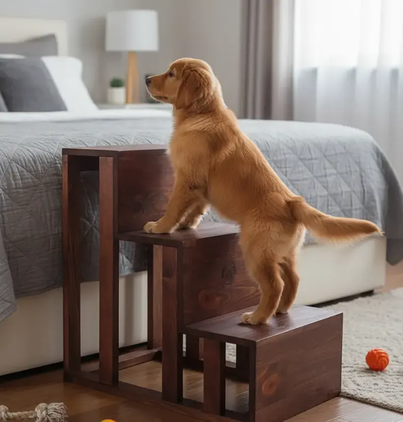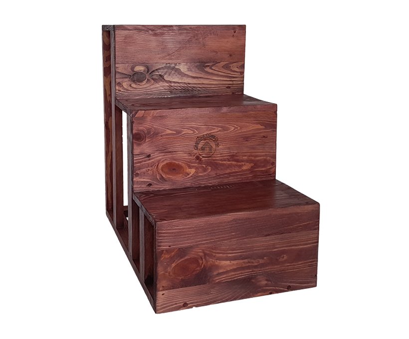 Nuestras Gradas de madera para mascotas pensadas para ayudar a perros, gatos pequeños o adultos a subir y bajar de la cama, el sofá, etc., están elaboradas con madera de pino tratado en acabado barnizado y reforzadas para tener una mejor estabilidad y resistencia. Son ideales para perros, puedes usarlas también para gatos, al ser multifunción también para uso en niños. Ayuda a llegar a sitios mas altos sin tener que saltar por lo que son gradas adecuadas para múltiples usos. Soportan un peso máximo de 100 libras. Altamente recomendable para casos de artrosis y artritis ya que proteje las articulaciones de la mascota y ademas se puede usar como medida preventiva.